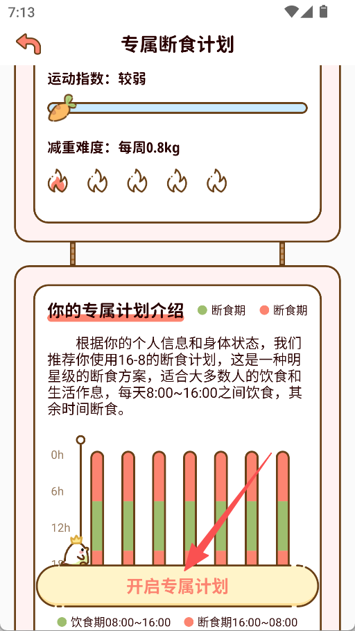 3、进入专属断食计划页面后,点击“开启专属计划”。