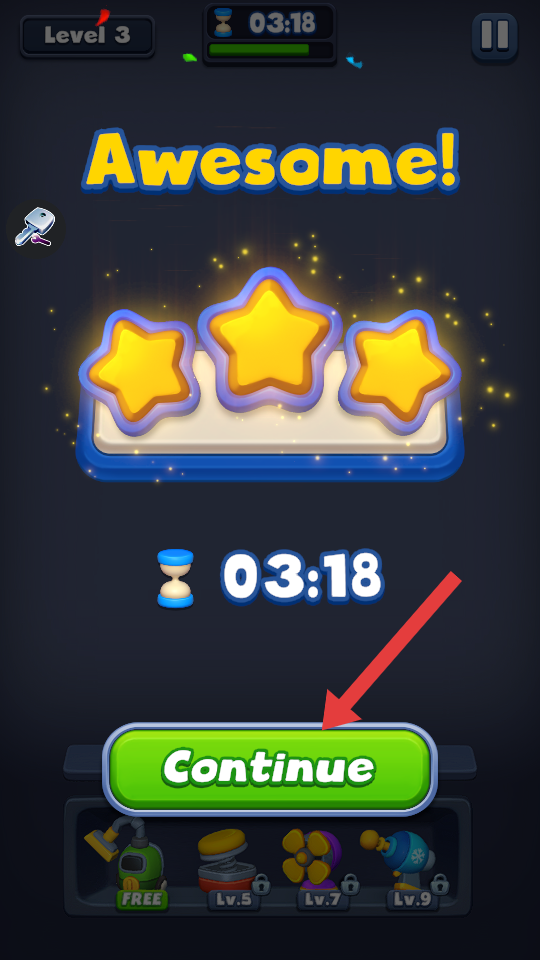 4、在规定时间内完成商品匹配,看到【Awesome!】评价和星级后,点击【Continue】按钮进入下一环节。