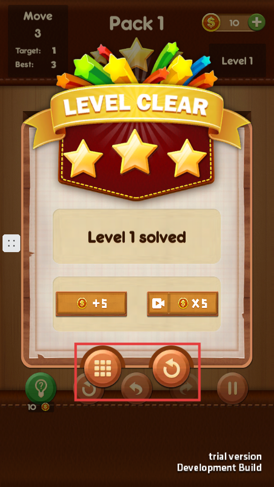 4、通关后点击【菜单】或【重玩】按钮,选关卡或复盘,继续解谜挑战。