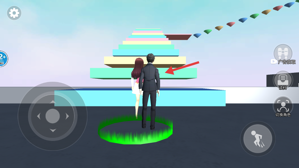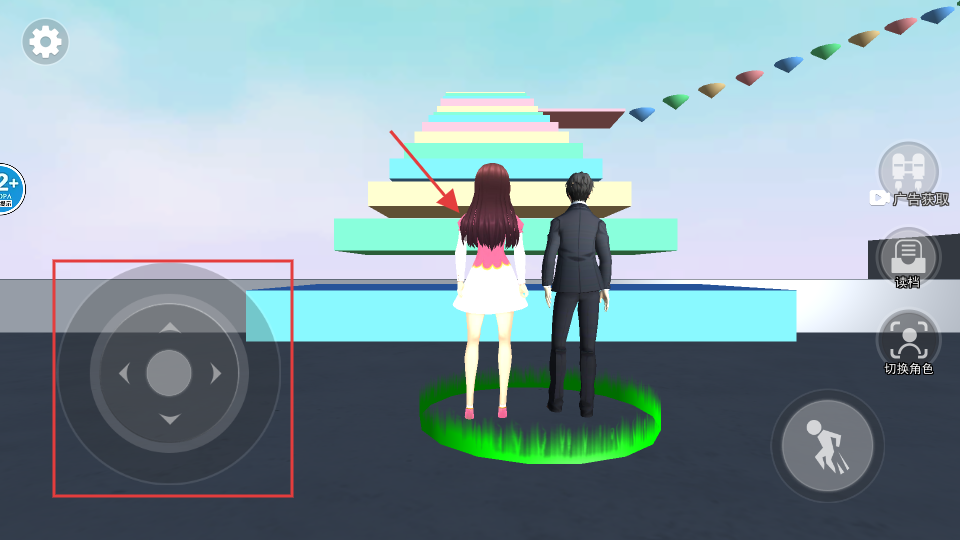 4、切换到男性角色后,继续用方向轮盘操控移动,朝着跑道方向前进。