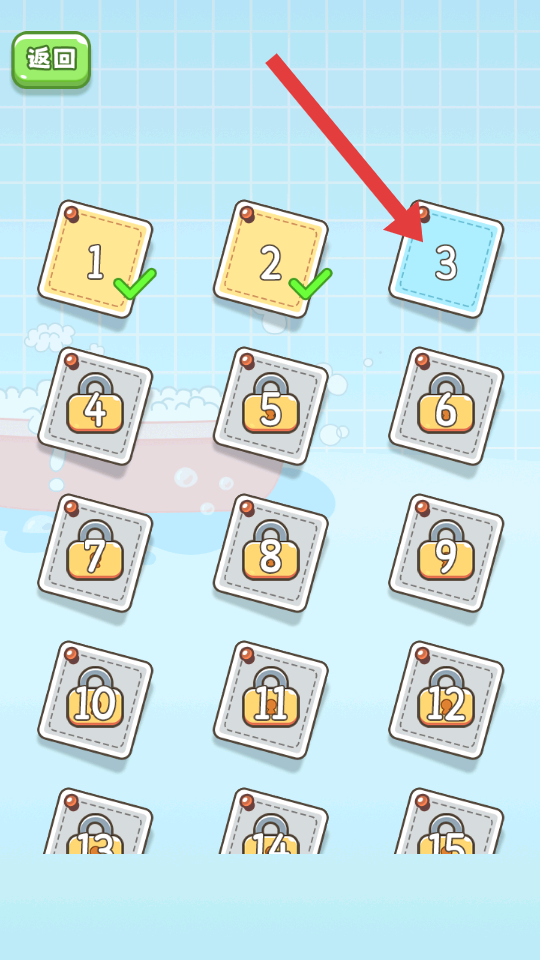 1、在关卡选择界面,查看已解锁关卡标记,点击如【3】号蓝色边框关卡,进入游戏关卡。