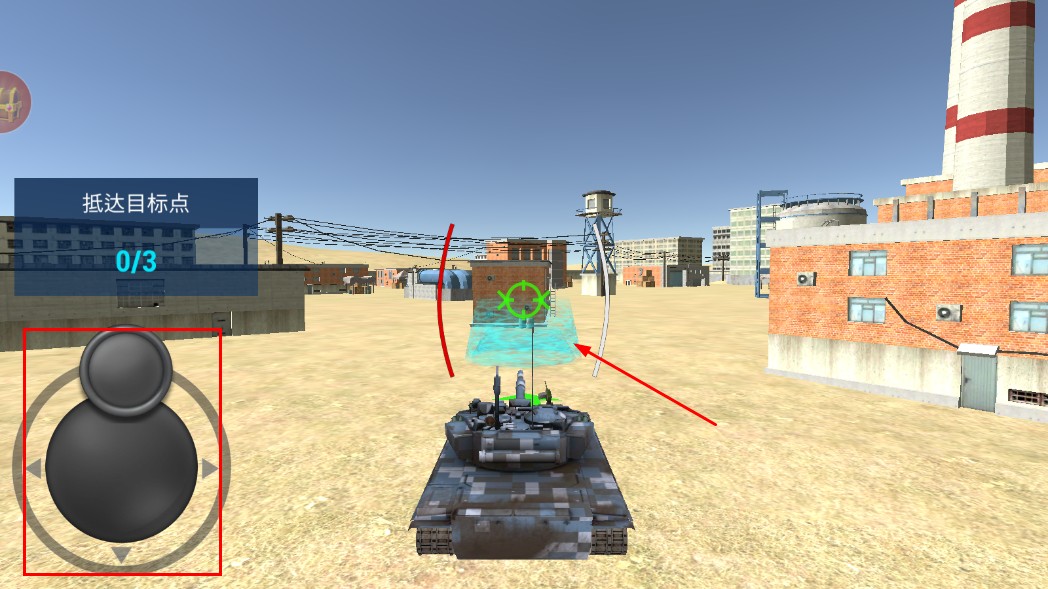 2、过程里,通过左侧摇杆操控坦克移动,朝着目标点行进。