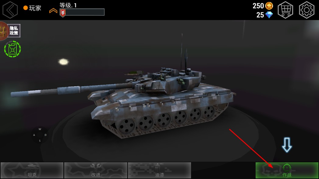 1、点击【作战】按钮,驾驶坦克进入战斗场景,开启任务挑战。