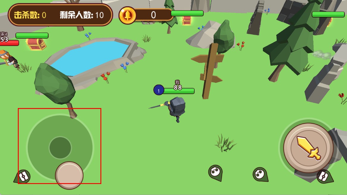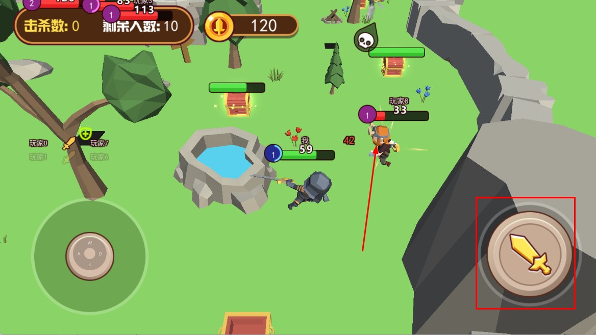 3、遇到其他玩家时,点击右侧攻击按键,向其发起攻击,争取击败对手。