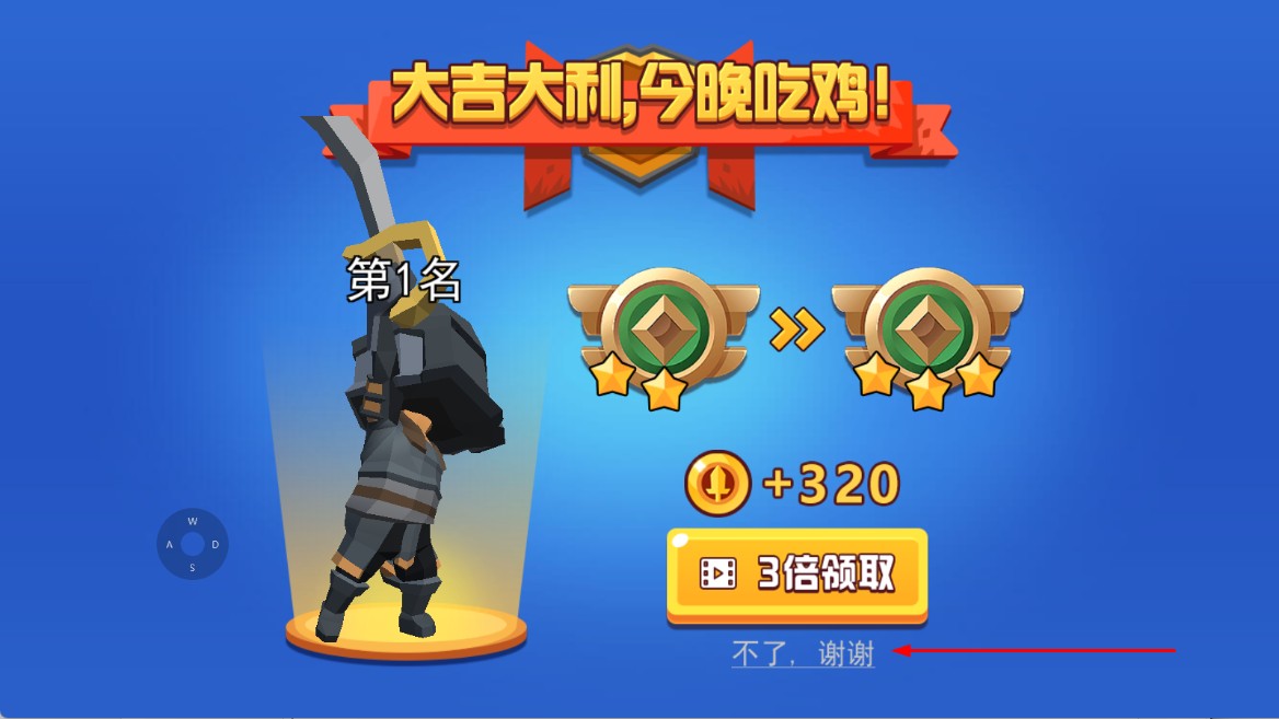 4、若成功取得第一名,可根据需求选择领取奖励的方式,也可点击“不了,谢谢”,结束该局并返回相关界面。