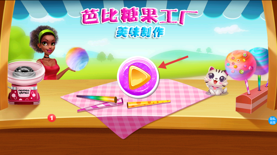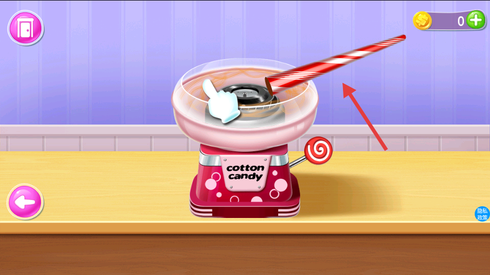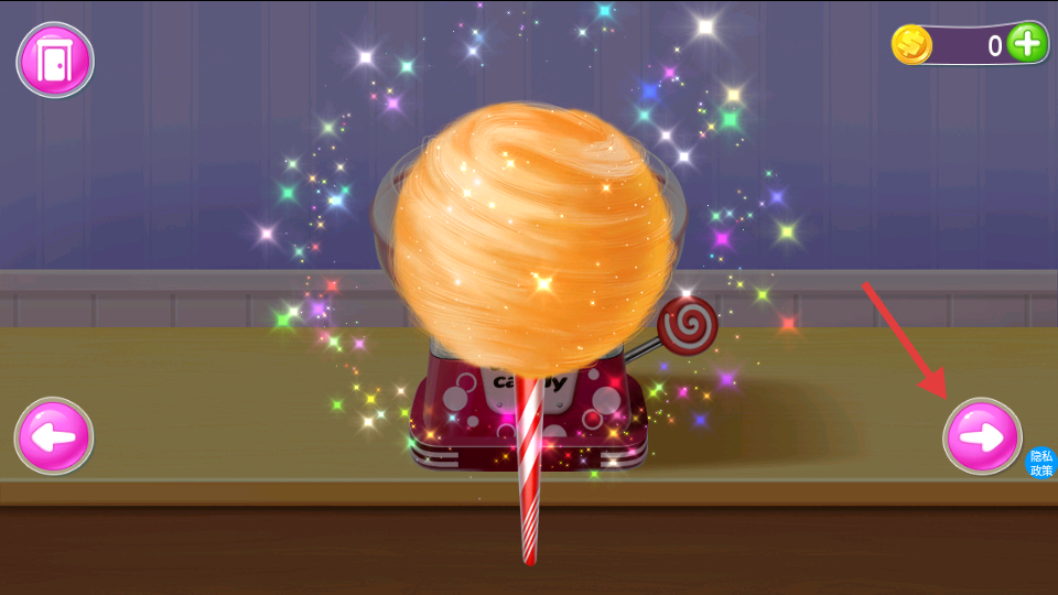 4、棉花糖制作完成后,点击右侧粉色箭头按钮,推进到后续装饰流程。