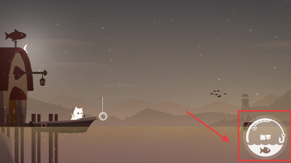 2、钓鱼时点击右下角【抛竿】按钮,将鱼钩抛入水中,开启钓鱼流程吸引鱼类。