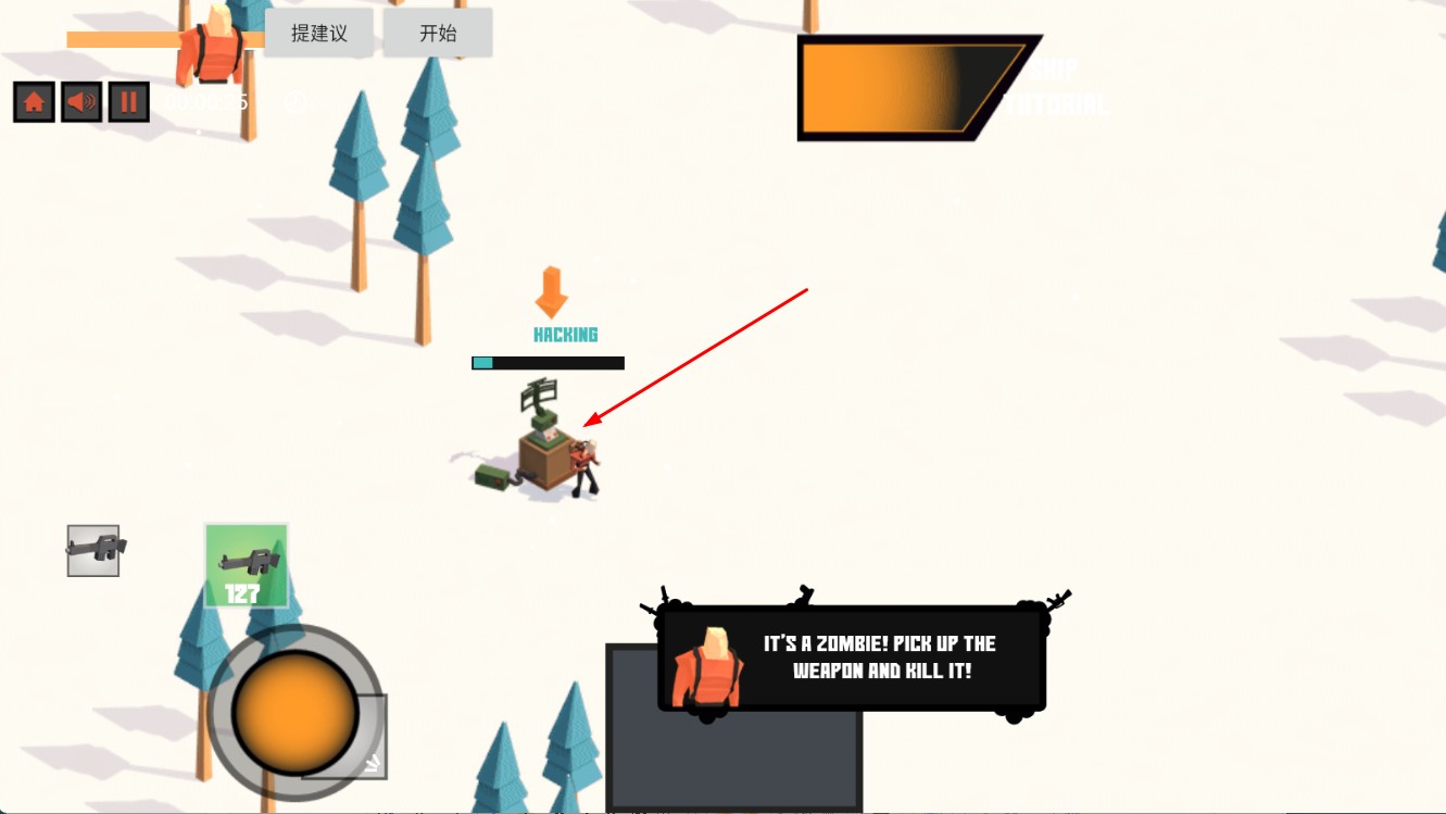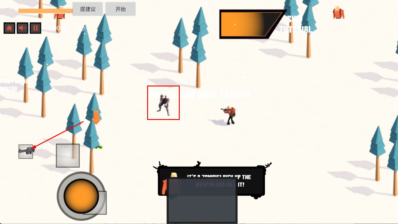 3、遭遇僵尸等敌人时,可拾取武器,然后向敌人发起攻击,消灭威胁。