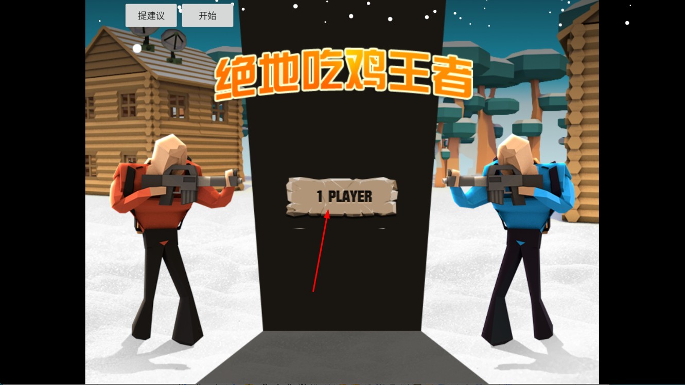 1、点击【1-PLAYER】,进入《绝地吃鸡王者》单人游戏场景,开启挑战。