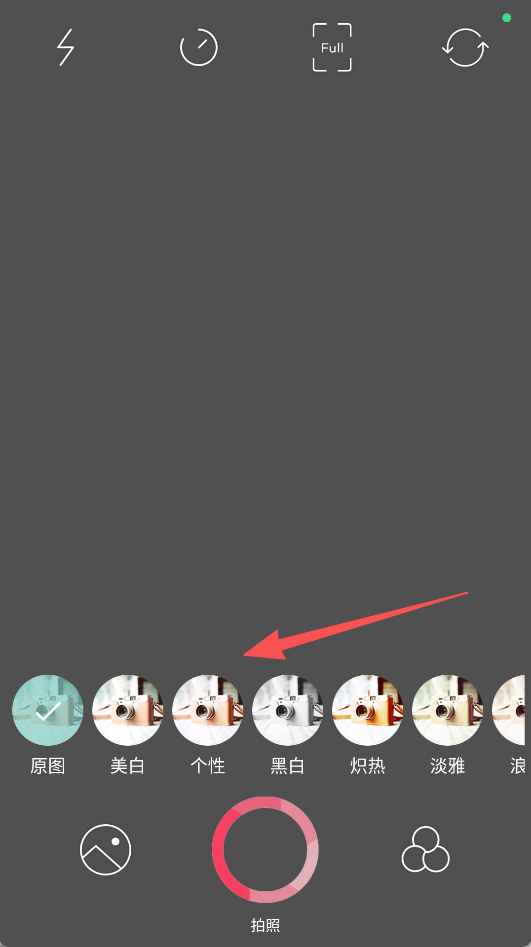2、滤镜风格种类丰富,拍摄时可选择原图、美白、个性、黑白等不同滤镜,为照片打造多样视觉效果。