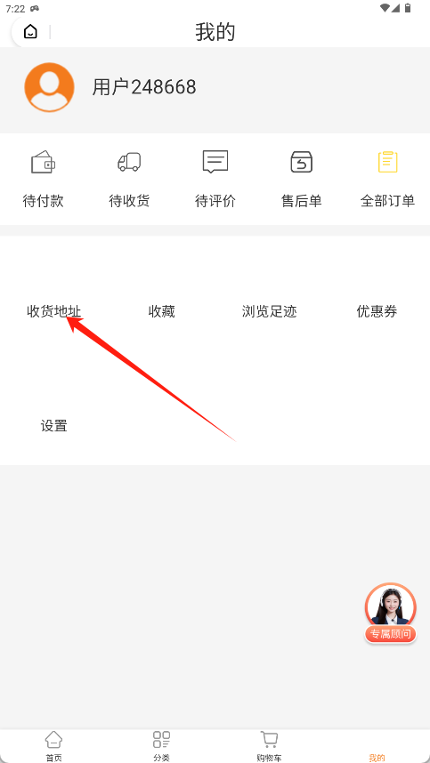 2、进入个人中心页面在账户信息下方找到并点击“收货地址”选项。