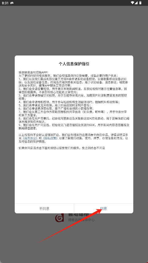 1、打开软件主界面,阅读个人信息保护指引点击“同意”。