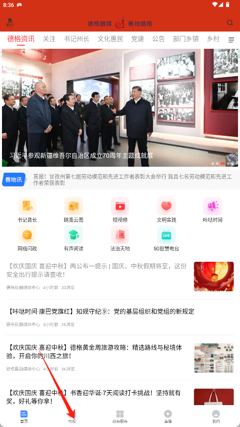 2、进入首页主界面,点击底部导航栏“电视”栏目进入。