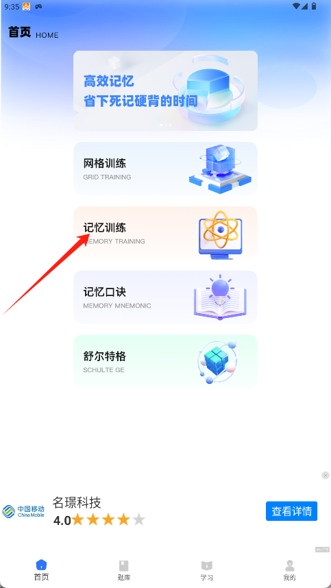 2、进入应用首页后,根据选择“记忆训练”功能模块进入。
