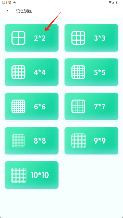 3、在训练难度选择界面,点击左上角的“2 * 2”方格开始基础训练。