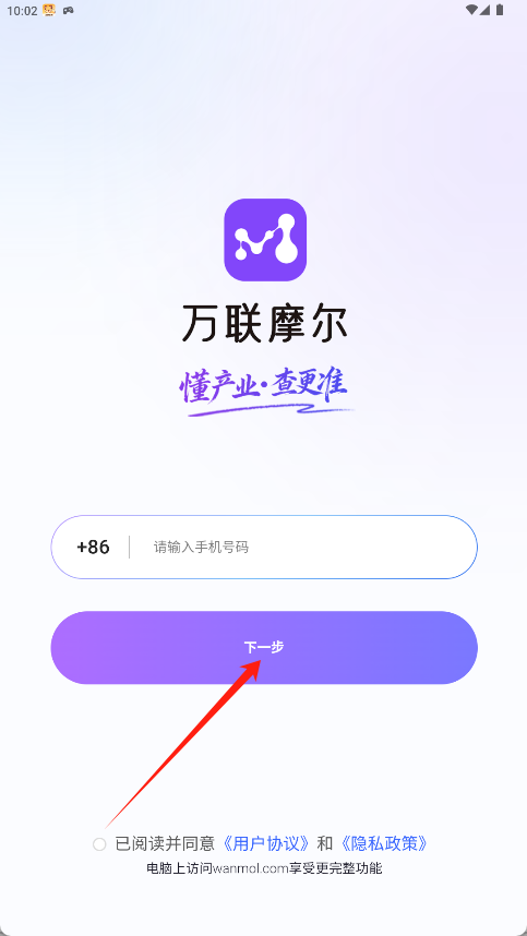 1、在登录界面输入手机号后,点击“下一步”按钮完成验证登入。