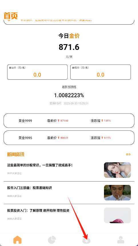 《融金通金价》核心功能是实时展示权威金价数据,首页显著位置呈现今日金价,并明确标注更新时间。界面清晰划分价格区与资讯区,同步列出黄金等不同成色的最新价与涨跌幅。软件特色在于将关键价格波动与相关财经新闻结合,下方资讯板块提供炒股常识、投资入门等实用内容及阅读量。金色主题设计强化金融属性,布局直观,便于快速获取核心行情与市场动态,辅助决策。