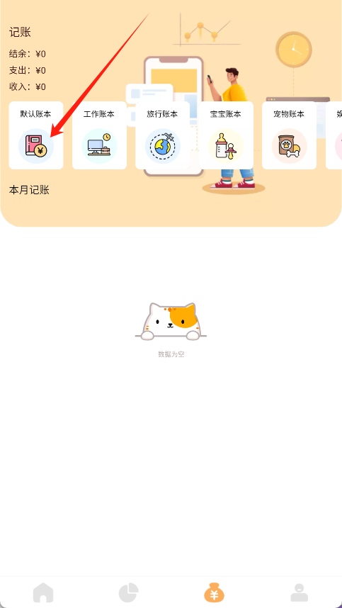 1、打开软件进入首页,点击底部导航栏的“记账”功能。