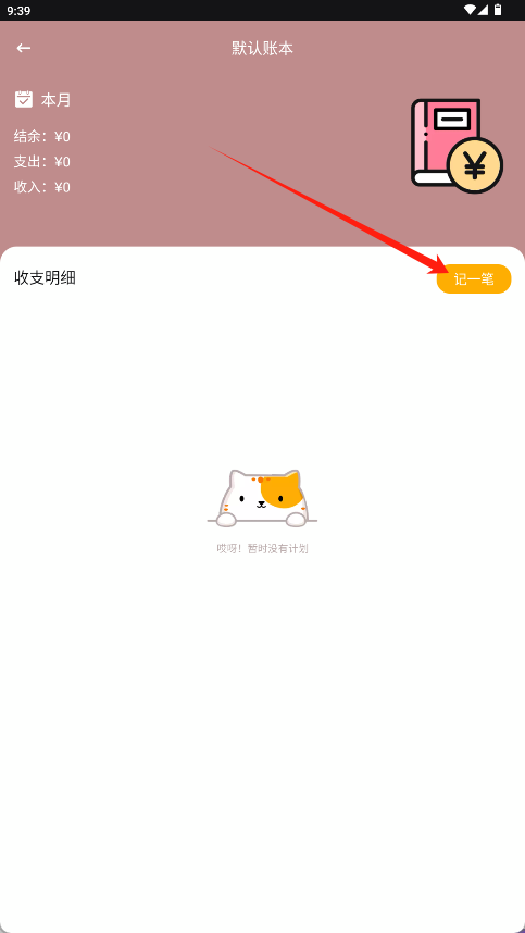 3、在账本页面点击黄色“记一笔”按钮,即可记录新的收支明细。