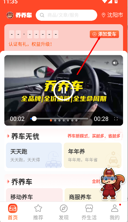 1、进入首页后,可以在页面中添加爱车信息,包括车辆型号与相关资料,便于后续管理与养护记录。