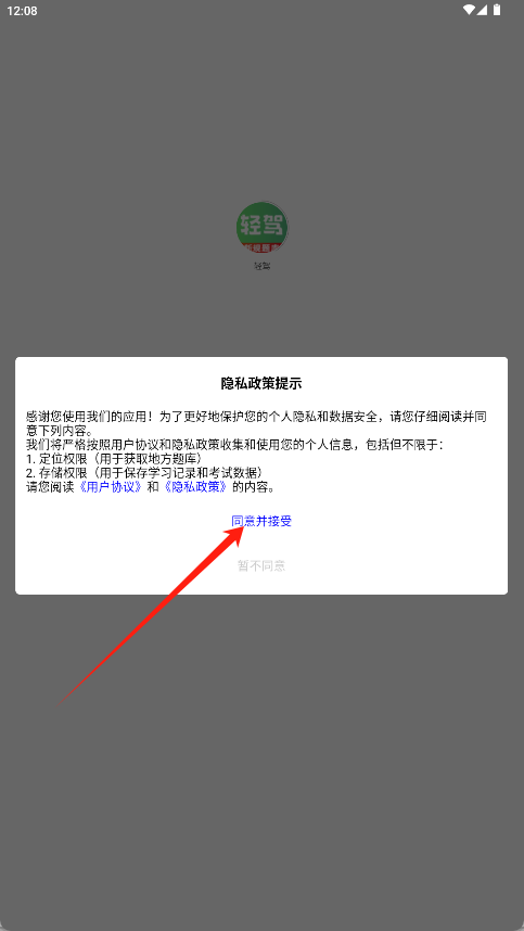 1、启动软件后,在隐私政策提示弹窗界面点击“同意并接受”按钮。
