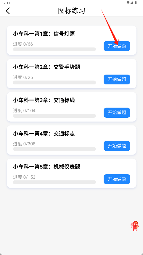 3、在图标练习页面选择具体章节,点击右侧“开始做题”按钮进入练习。