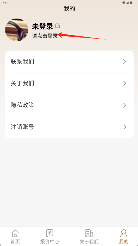 2、进入“我的”页面后,点击上方“请点击登录”区域。