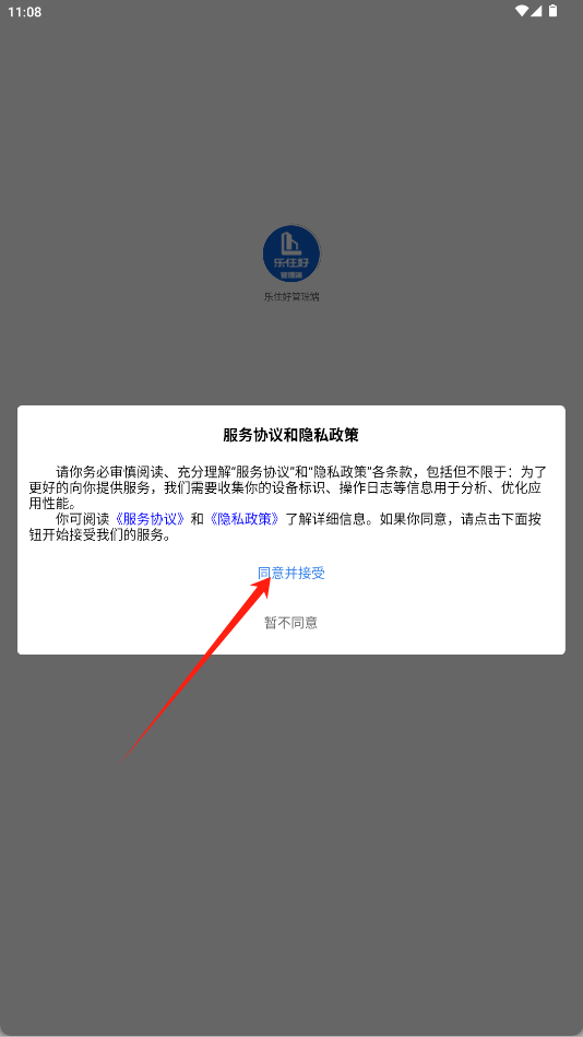1、首次启动软件后,仔细阅读《服务协议和隐私政策》内容,并点击“同意并接受”按钮。