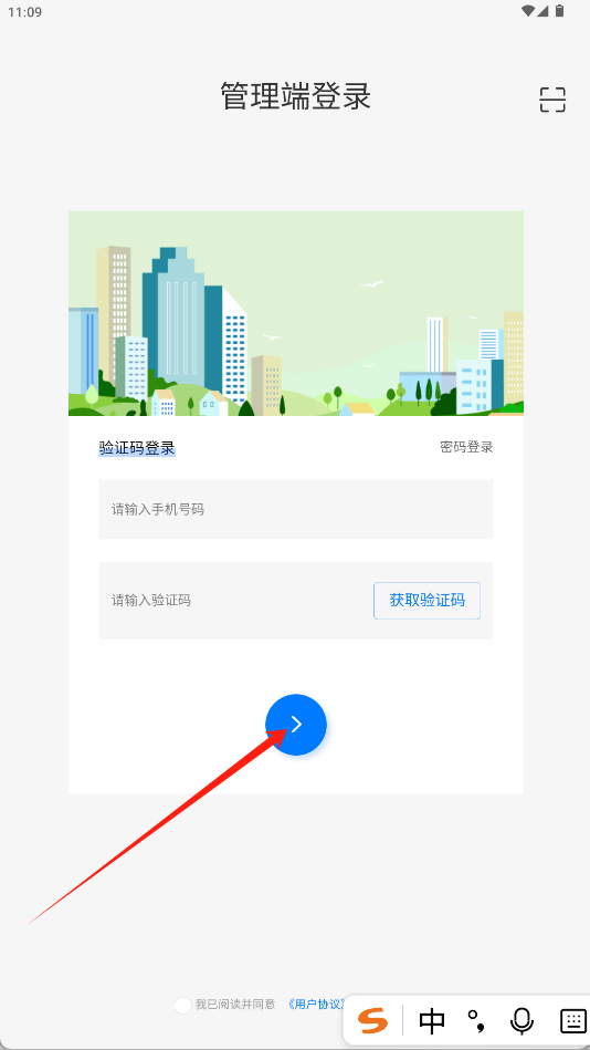 2、在登录界面选择“验证码登录”方式,输入手机号码并获取填写验证码,最后点击登录。