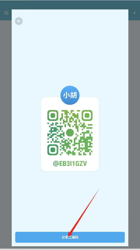 3、展示页面,点击底部的“分享二维码”按钮,即可将个人名片分享给他人。