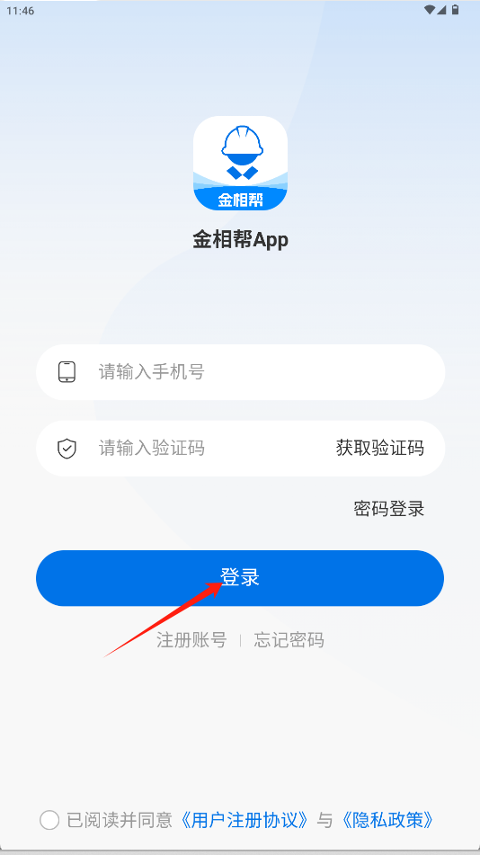 2、在登录界面输入手机号码及收到的验证码,完成账号的登录或注册流程。