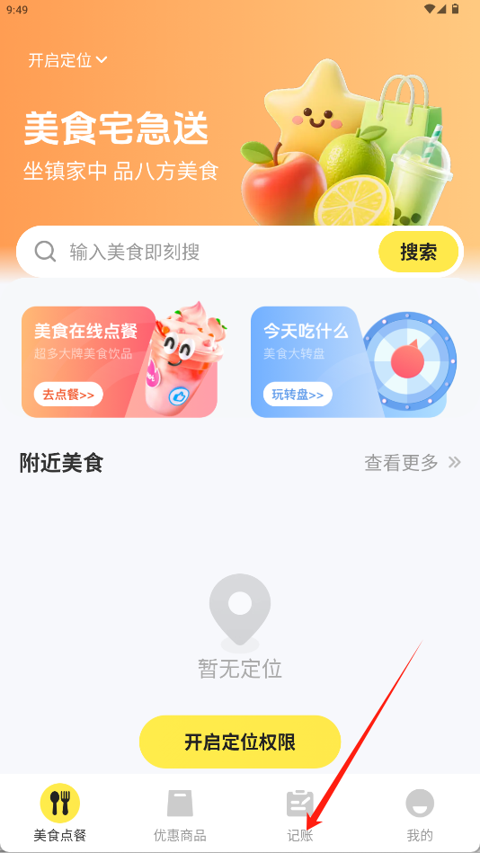 2、包含“附近美食”推荐功能。基于地理位置信息展示周边可用的外卖商户,方便发现附近的新店或热门餐厅。