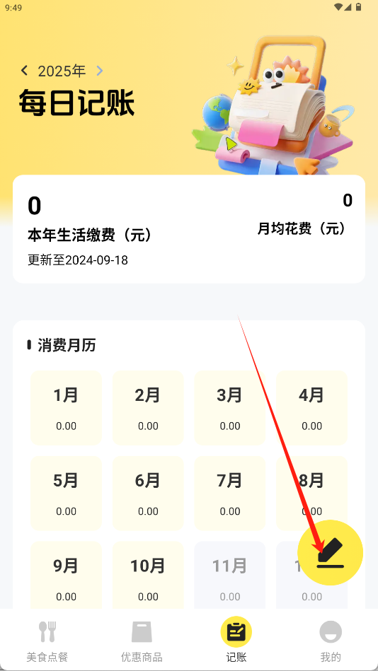 2、进入每日记账页面后,再次点击右下角中的“铅笔图标”按钮。