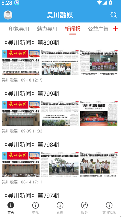 1、进入首页后,可以浏览最新新闻报道、观看公益广告,还能进入“魅力吴川”栏目,全面了解本地动态与城市风采。