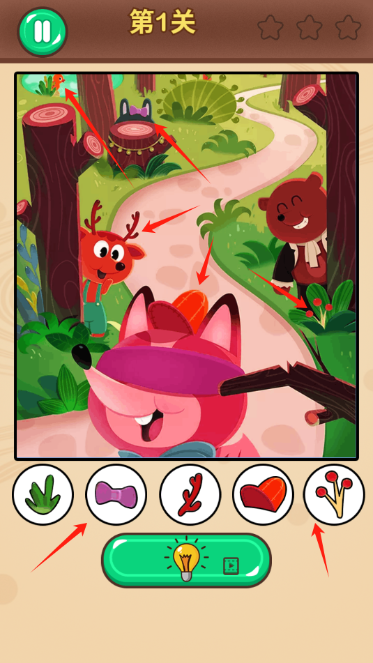 2、关卡中,以下面的5种物品,需在图中找到即可。