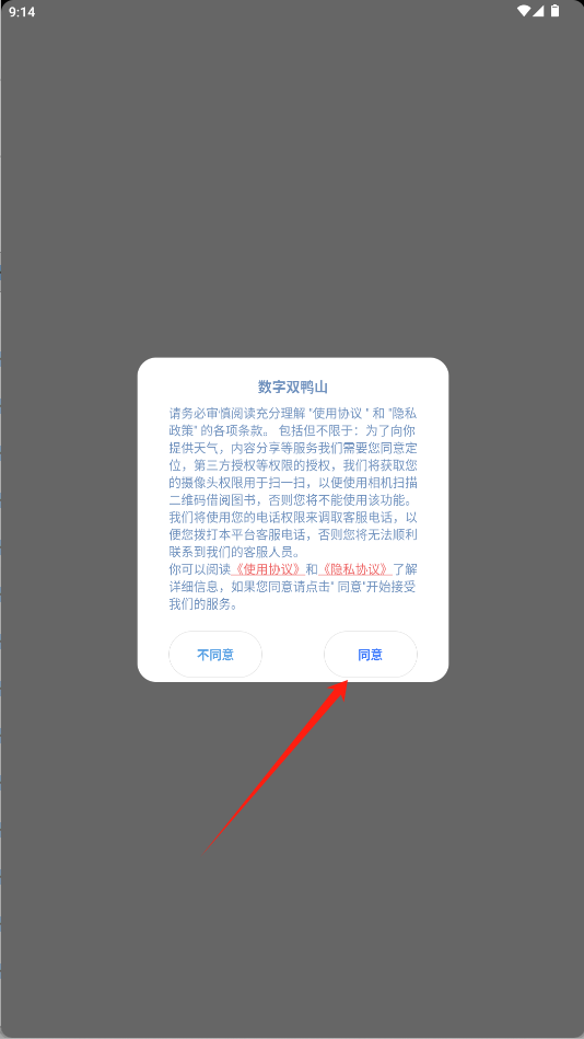 1、启动软件后,在权限申请界面点击“同意”按钮,完成服务授权。