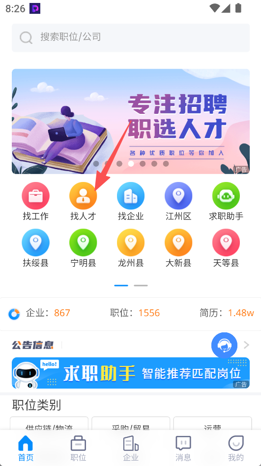 1、专注崇左本地招聘求职,个人可创建简历主动寻岗,企业能发布招聘信息、筛选简历,还支持定位找附近工作机会。