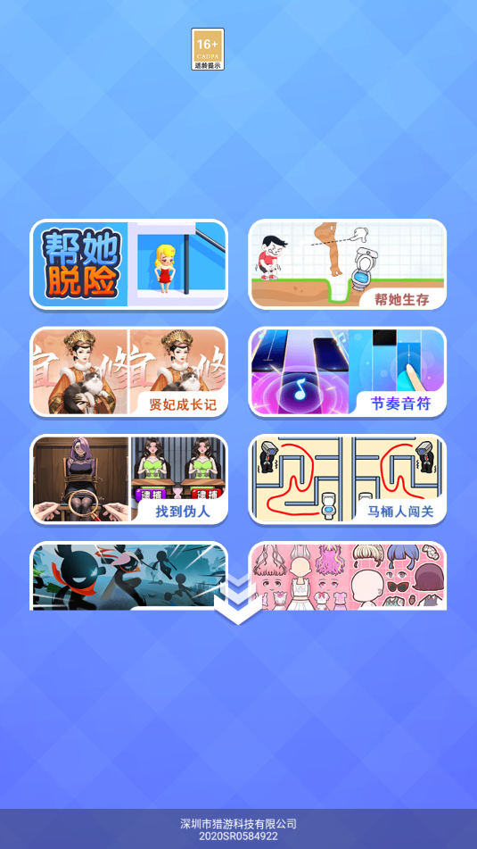 1、游戏主界面,拥有不同的各类小游戏,每一种游戏都有不同的玩法。
