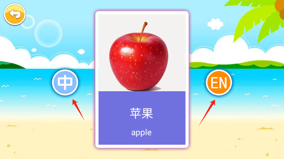 3、进入水果页面,可点击中发出中文发音,点击EN发出英文发音。