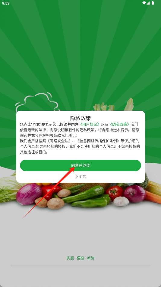 1、打开软件阅读“隐私政策”点击“同意并继续”进入。