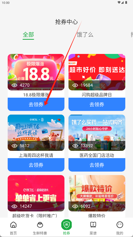 3、直接跳转到抢券中心可查找你想要的优惠券点击“去领券”。