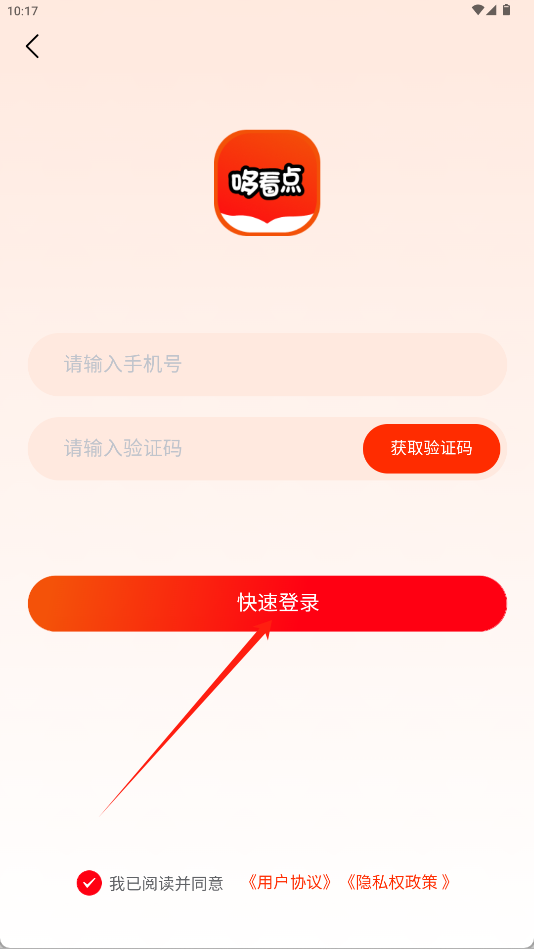 1、在登录界面输入手机号获取验证码完成快速登录。
