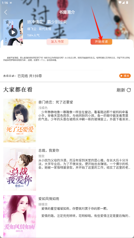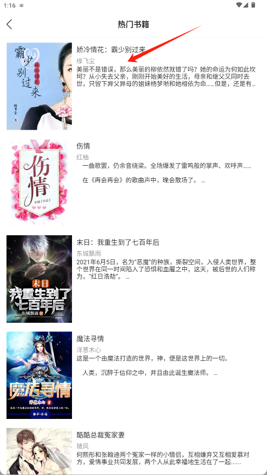 2、在书籍列表中选择自己喜欢的小说并点击封面进入书籍详情页。