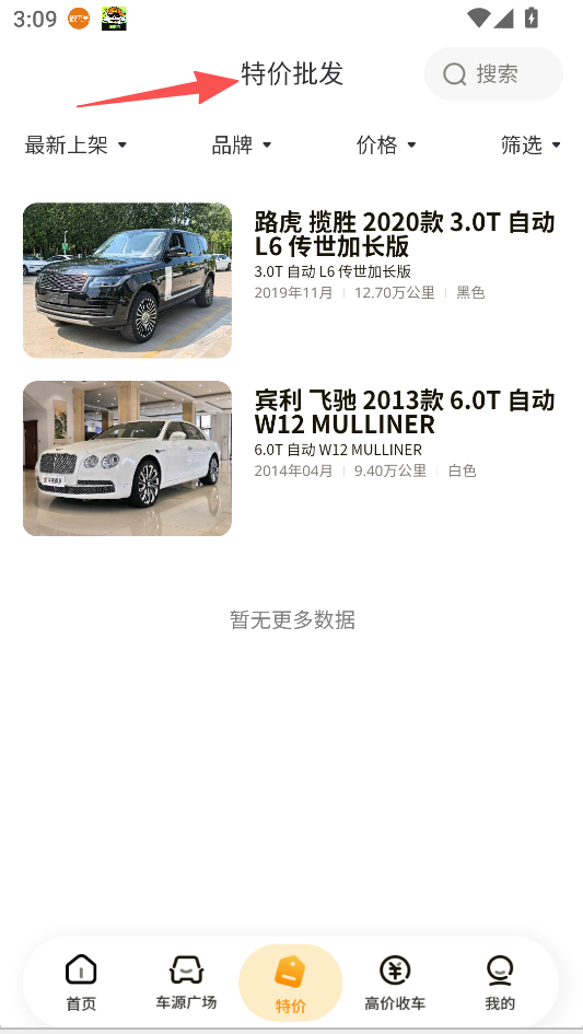 3、进入特价批发板块,可查看特价车辆,进行选购。