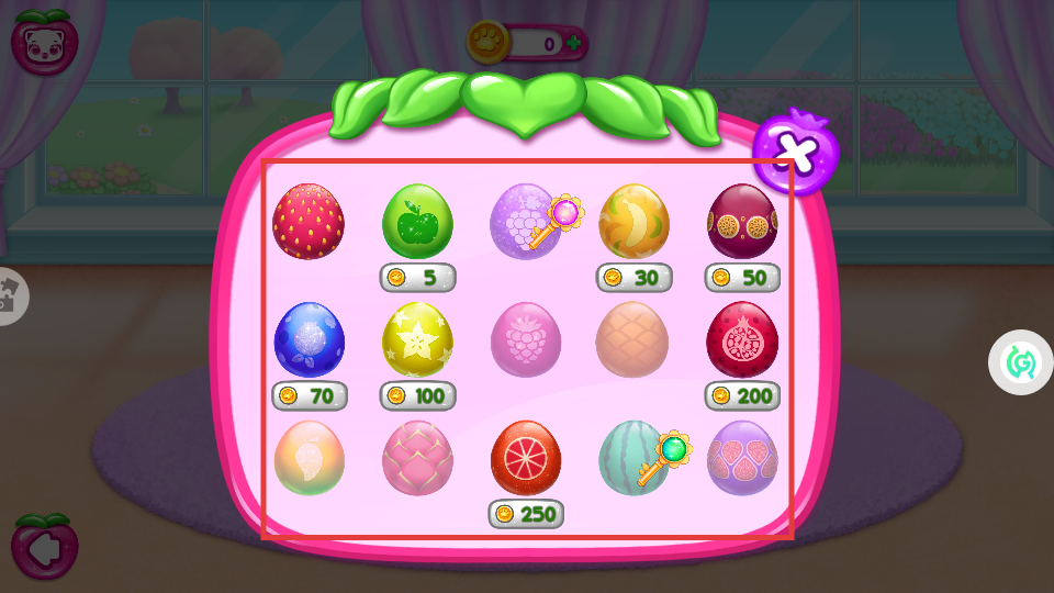 2、进入孵化界面,消耗【5】【30】等对应金币选水果蛋,孵化可爱宠物,丰富阵容。