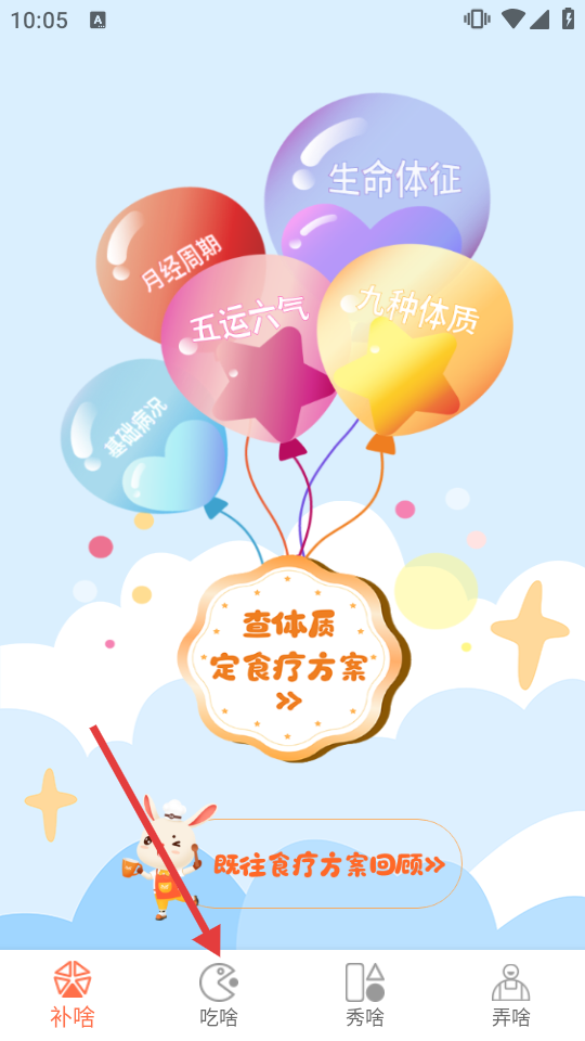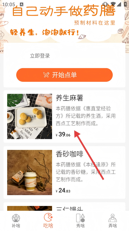 1、打开养生类APP,点击底部【吃啥】,进入药膳选购页面。