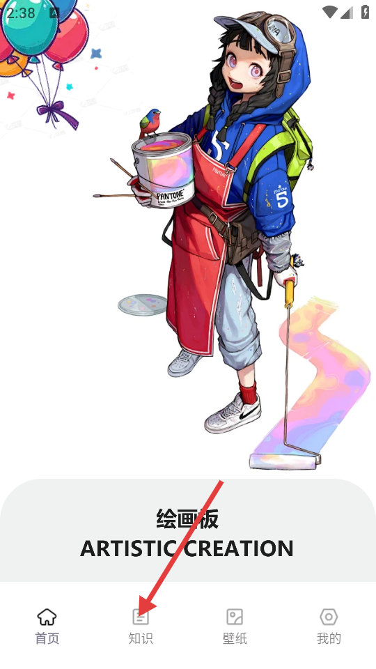 2、进入APP后,点击底部【知识】,进入绘画知识页面。