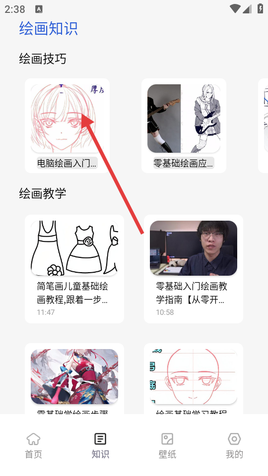 3、在绘画知识页面,选择感兴趣的内容点击进入。