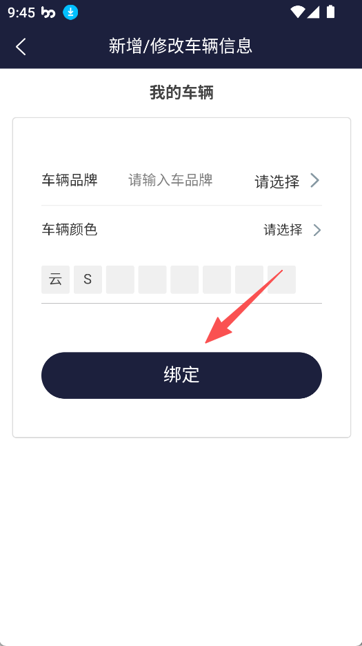 2、在新增/修改车辆信息页面,填写车辆信息,完成车辆信息绑定。