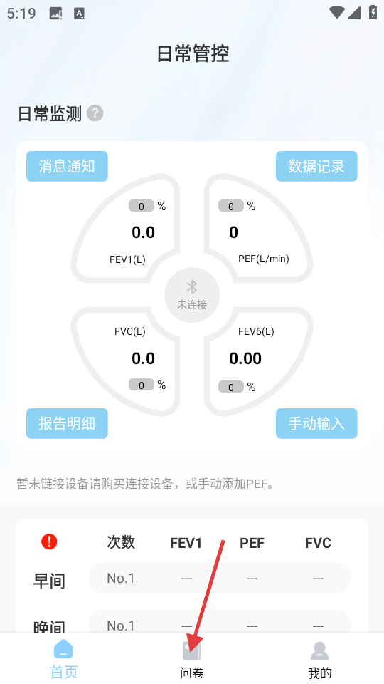 2、多设备兼容:适配常见便携式肺功能测量仪器,测量结果自动同步保存,支持查看详细测量记录。